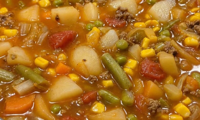- Cover and simmer for 45–60 minutes, until veggies are tender.