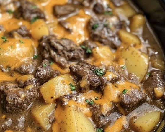 Amish Farmhouse Feast – Cheesy Beef & Potato Stew (Slow Cooker)