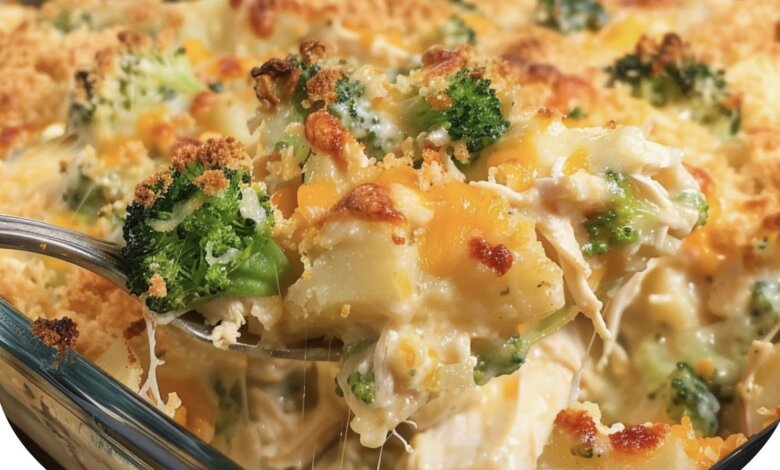 A creamy, cheesy, family-friendly casserole loaded with tender chicken, soft potatoes, and fresh broccoli.