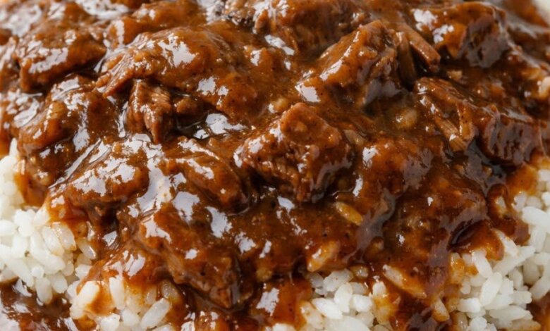 Slow Cooker Beef & Gravy over Rice