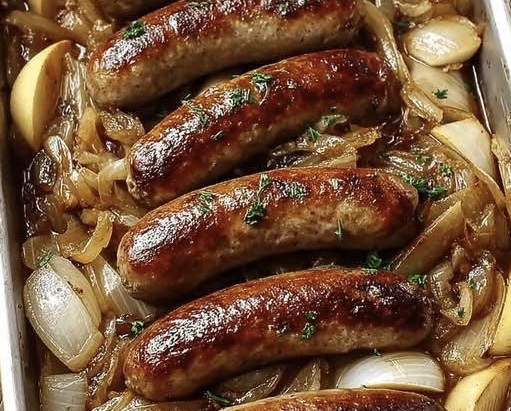 Have you ever tasted brats slow-braised in beer with apples and onions? Rich, savory, and a touch sweet—perfect for cozy dinners or game day.