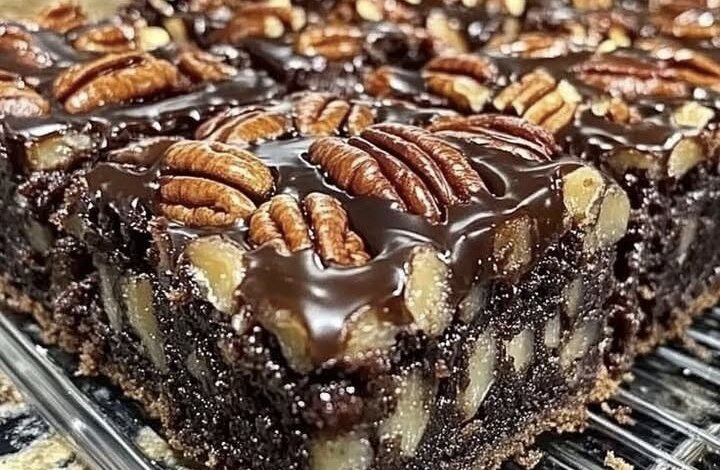 A nostalgic holiday treat: fudgy brownie base topped with buttery, gooey pecan pie — crunchy, gooey, and utterly irresistible.