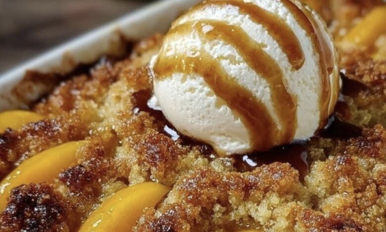 A warm, buttery cobbler packed with juicy peaches and a golden sweet crust — simple, comforting, and perfect for any season.