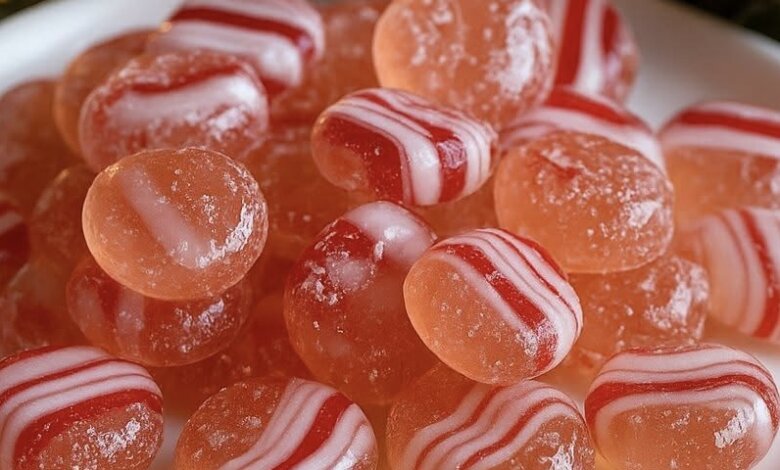 A festive peppermint-cinnamon hard candy with a kick of Fireball whiskey — great for holiday treats and adult gift jars.