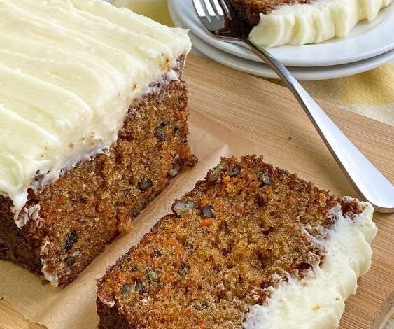 “A moist, spiced carrot loaf topped with rich cream cheese frosting — truly irresistible!”