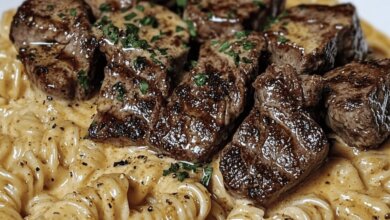 Garlic Butter Steak Bites & Spicy Cajun Alfredo Twisted Pasta