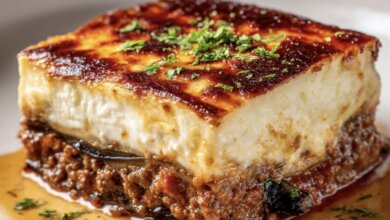 Greek Moussaka Recipe 🍆🇬🇷 Greek Moussaka 🍅🧀 A classic Greek comfort dish made with tender roasted eggplant, a rich spiced…