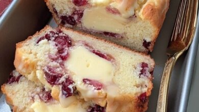Cranberry Cheesecake Bread (with Vanilla Glaze) Soft vanilla loaf • creamy cheesecake ribbon • pops of tart cranberry Yield:…