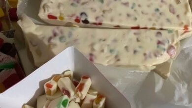 🍬 White Chocolate Gummy Candy Bars “These are my most popular bars — I make at least 500 every Christmas!…