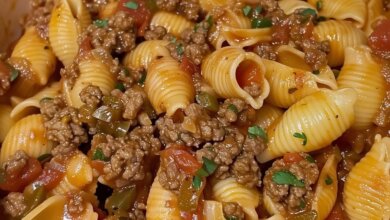 🍝 Cheesy Beef Shell Pasta “My husband said to never ever make this again… because he couldn’t stop eating it!…