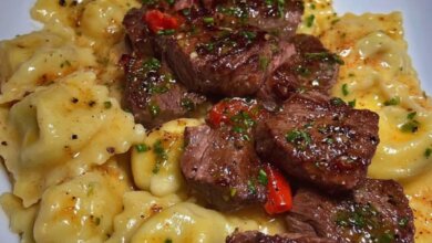 🥩 Steak Cuts & Cheese Ravioli in Garlic Butter ⭐ Ingredients: 1 lb steak cuts (sirloin or ribeye) 1 package…