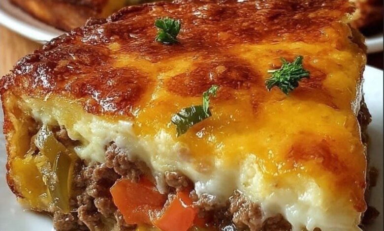 Layers of seasoned ground beef, tender vegetables, and melted cheese come together to create a rich and satisfying meal.