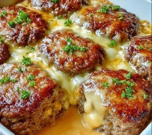 Juicy seasoned beef patties in a savory gravy topped with melted cheese — perfect for dinner parties and family nights.