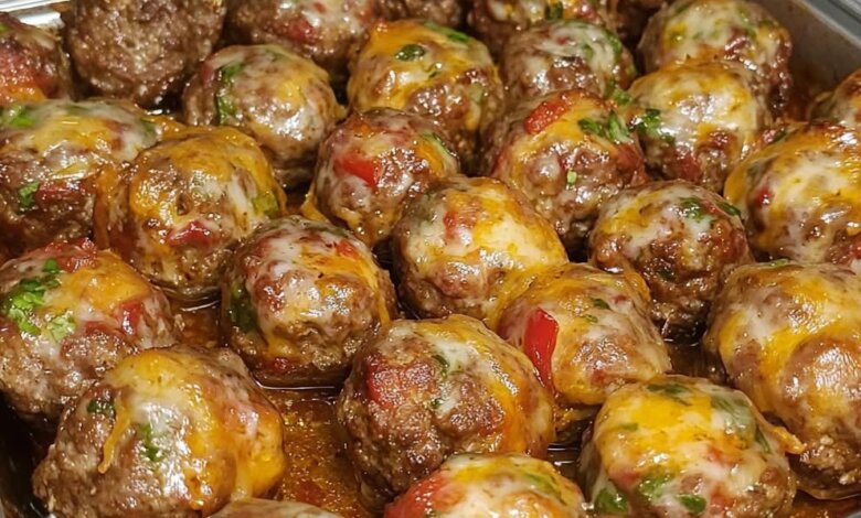 Each meatball is filled with melted cheese and baked in a rich savory sauce.