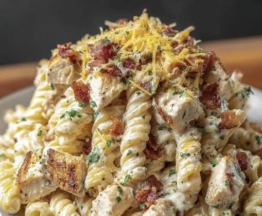 Twisted pasta in a silky ranch-cheddar sauce with juicy seared chicken. Perfect for busy nights.