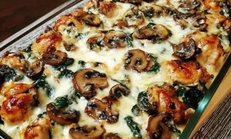 Chicken Spinach & Mushroom Low Carb Oven Dish