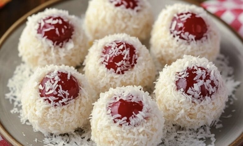 Every December, we make these sweet coconut–cherry snowballs while Christmas