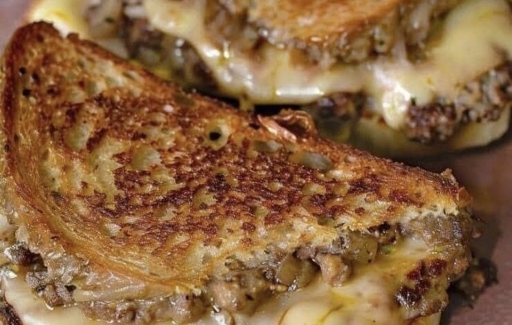 This Classic Patty Melt is a delicious mix between a burger and a grilled cheese sandwich ā juicy beef patties, caramelized onions, and melted Swiss cheese between perfectly toasted rye bread.