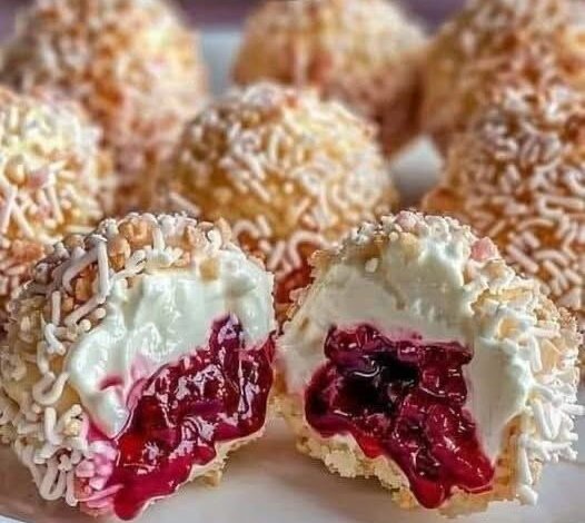 Creamy Jam-Filled Coconut Balls 🥥🍓