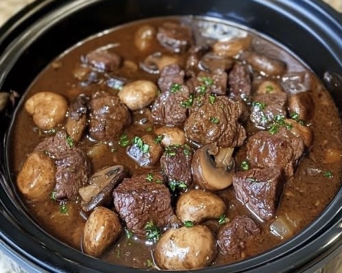 A cozy French-style braise: fork-tender beef and mushrooms in a rich red-wine sauce. Every bite feels like a first-class ticket to Paris.
