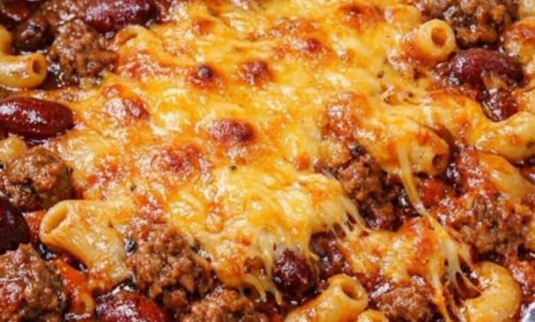 With hearty chili, tender macaroni and a layer of melted cheese,