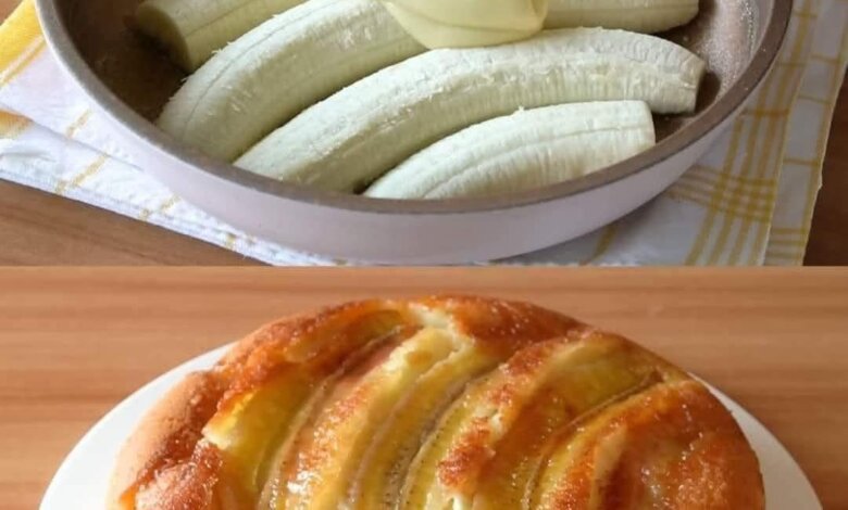 - Arrange the banana halves evenly on the bottom of the prepared pan.
