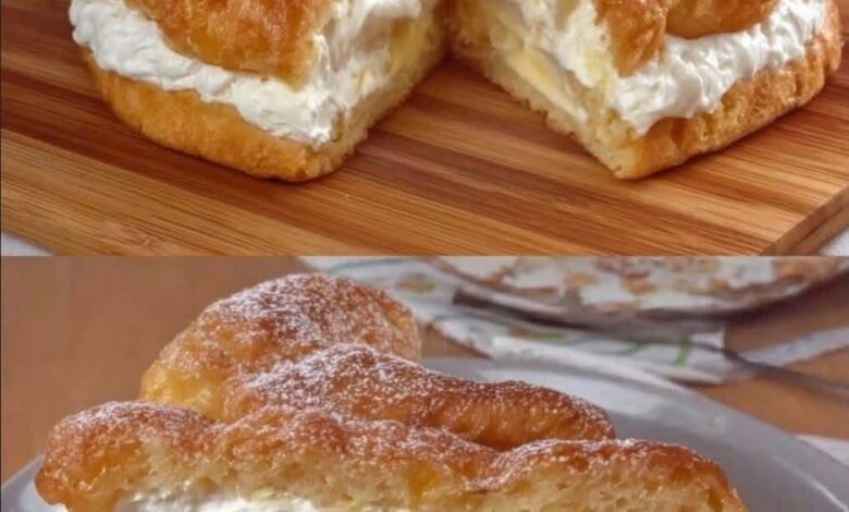 - Slice the baked ring horizontally and fill it with the cream mixture.