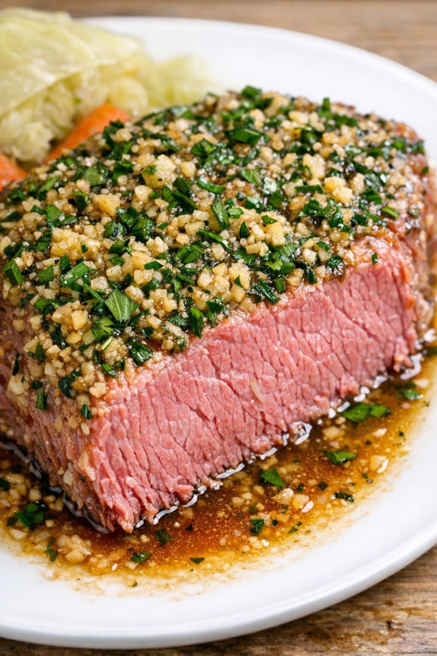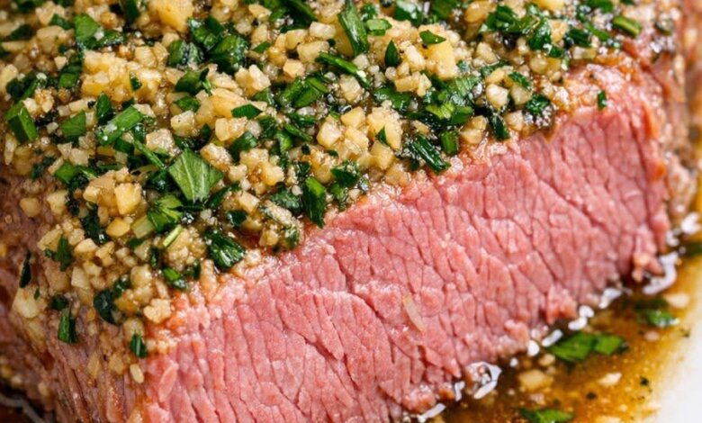 This juicy roast beef is coated in a flavorful garlic herb crust, making it perfect for special dinners with minimal effort. Only a few ingredients, but incredible results!