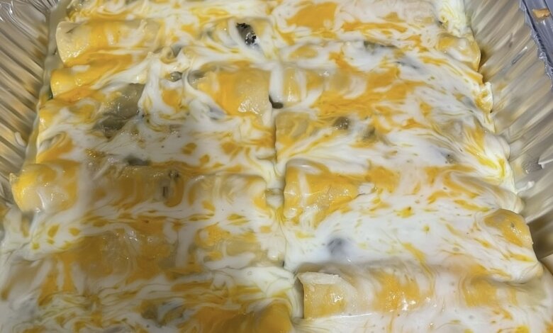 - Sauce & cheese: Pour remaining sauce over enchiladas, coating edges. Top evenly with shredded cheese.