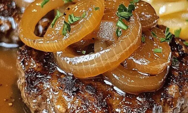 Juicy beef patties smothered in rich, savory onion gravy — pure comfort on a plate.