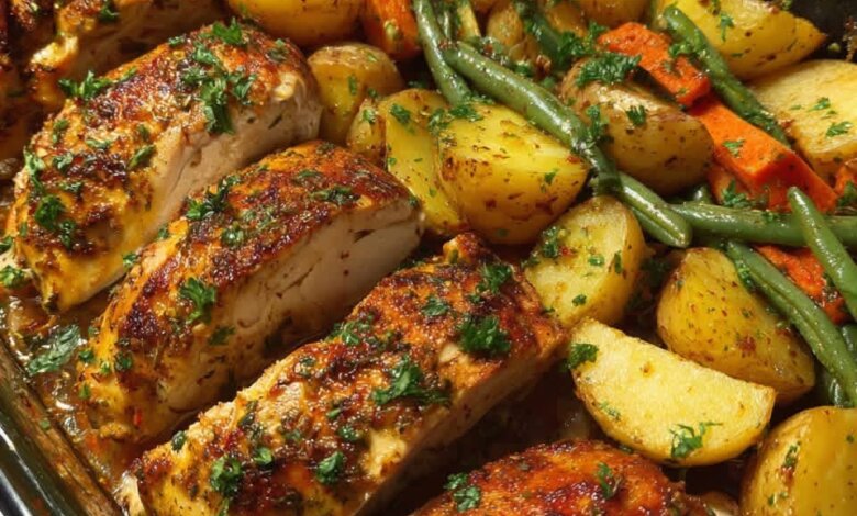 Herb-Roasted Chicken Breasts with Potatoes, Carrots & Green Beans