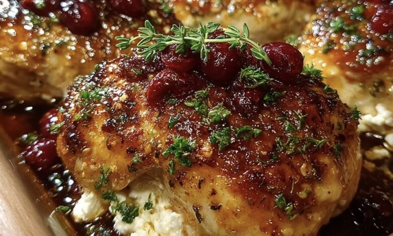 Honey Cranberry Chicken Bake with Goat Cheese 🍯🍗