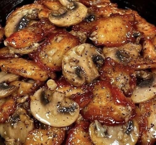 A quick and flavorful skillet dish that combines juicy chicken, earthy mushrooms, and a glossy honey-garlic glaze.