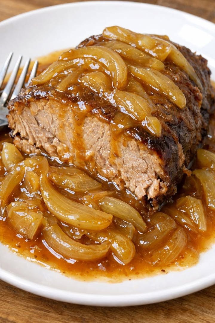 Melt-in-Your-Mouth Slow Cooker Onion Beef Roast (4 Ingredients)