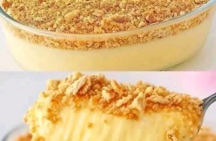 Pour the mixture into a serving dish and sprinkle crushed biscuits evenly on top.
