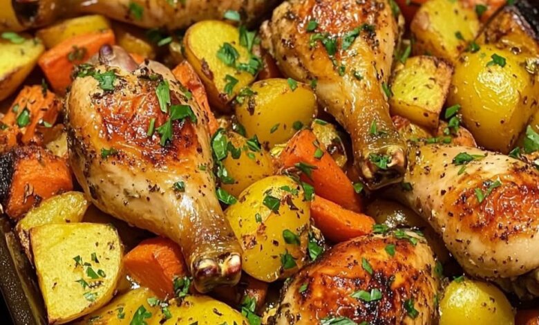 ๐Ÿ— One-Pan Herb-Roasted Chicken Drumsticks with Potatoes & Carrots ๐Ÿฅ•๐Ÿง„