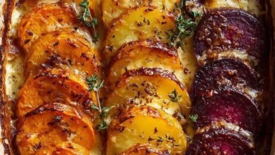 6. Roast for 40โ€“45 minutes, flipping vegetables once halfway, until chicken is golden and cooked through (internal temp: 165ยฐF / 74ยฐC).