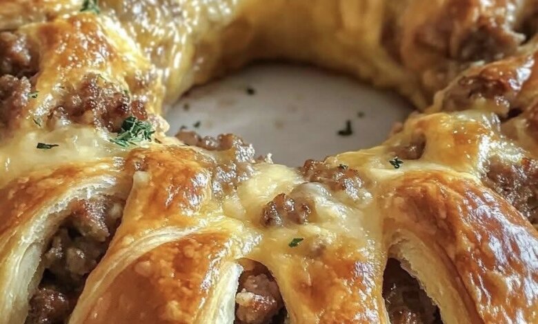 - Arrange the sausage mixture in a ring around the inner circle. Top with remaining cheese.