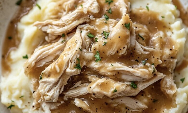 Tender, juicy shredded chicken smothered in rich, savory gravy — perfect