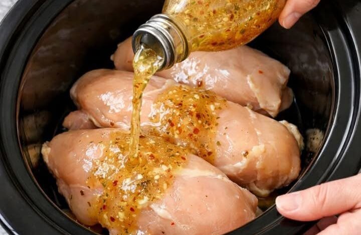 The Italian dressing helps tenderize the chicken while adding a rich, tangy flavor.