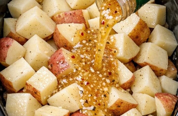 dressing and two simple ingredients over potatoes, let the slow cooker do