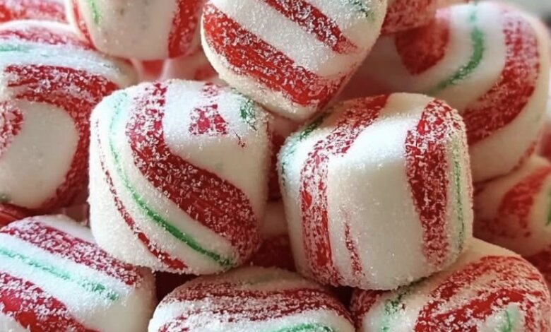 A festive, soft peppermint candy — red & green swirls dusted with powdered sugar. Easy to make and perfect for gift jars or holiday plates.