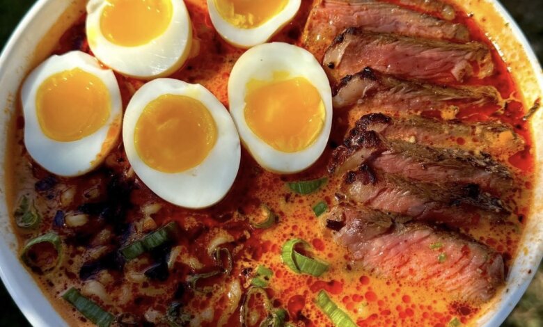 Spicy Steak Ramen with Marinated Jammy Eggs 🔥🤤