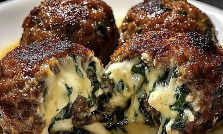 🧄 Spinach Garlic Meatballs Stuffed with Mozzarella