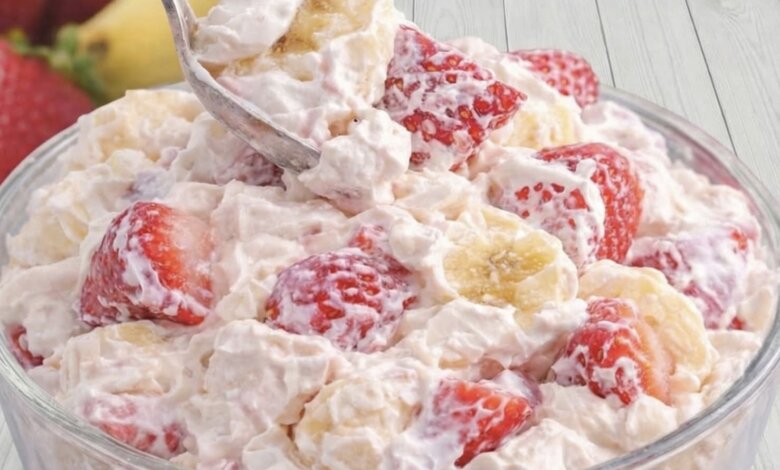 This creamy strawberry banana cheesecake salad is light, fluffy, and bursting with fresh fruit flavor. It’s the perfect quick no-bake dessert for gatherings.